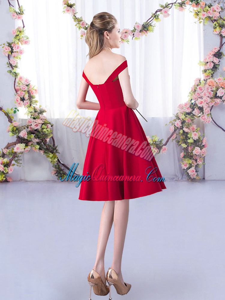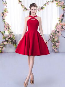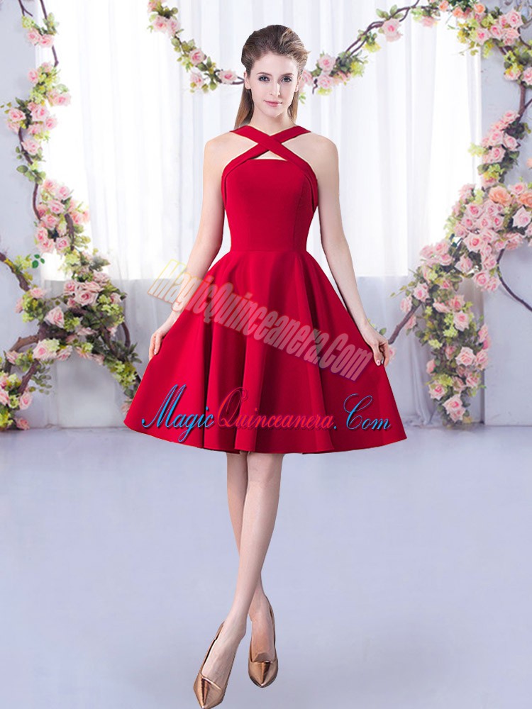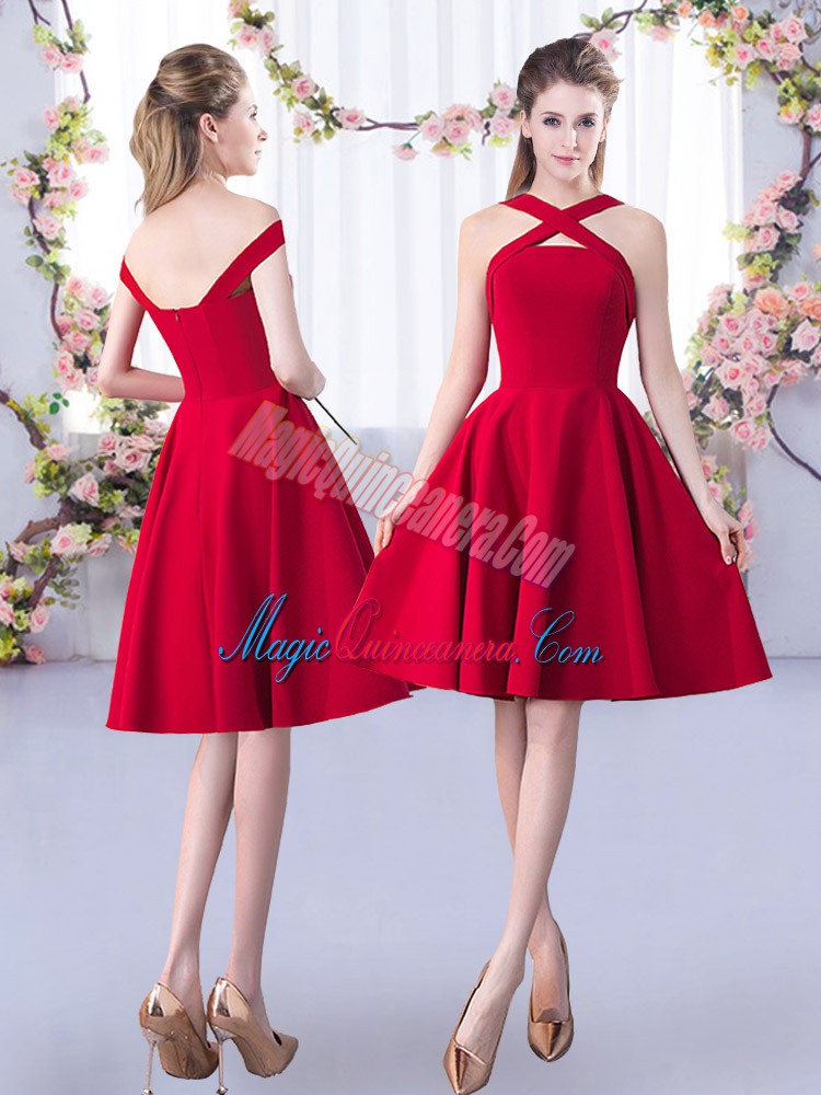 Knee Length Red Quinceanera Dama Dress Straps Sleeveless Zipper