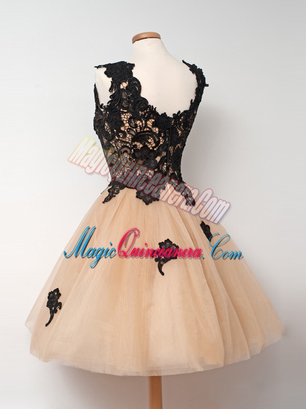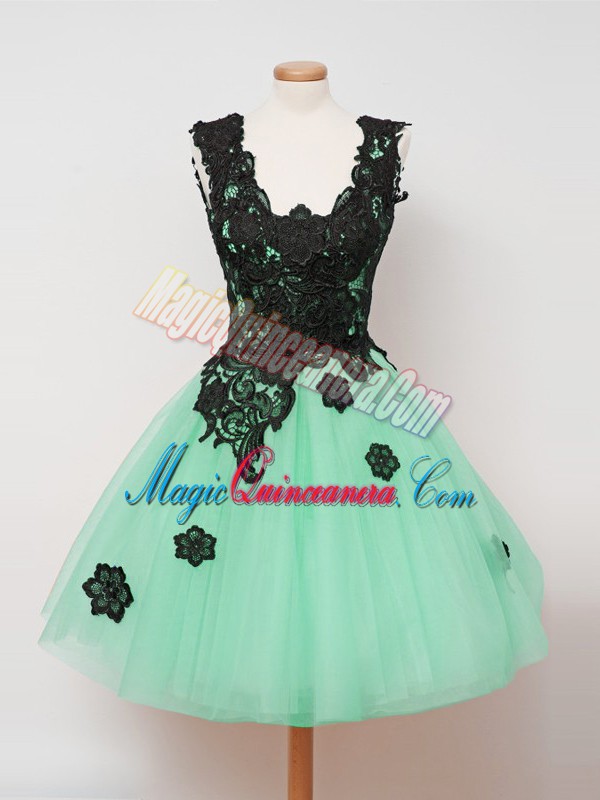 Knee Length Zipper Quinceanera Dama Dress Turquoise for Prom and Party and Wedding Party with Lace