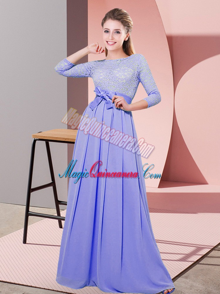 Lace and Belt Quinceanera Court Dresses Lavender Side Zipper 3 4 Length Sleeve Floor Length