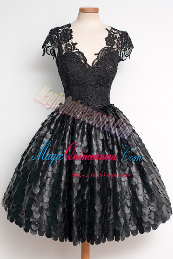 Lace Cap Sleeves Knee Length Mother of Groom Dress and Lace