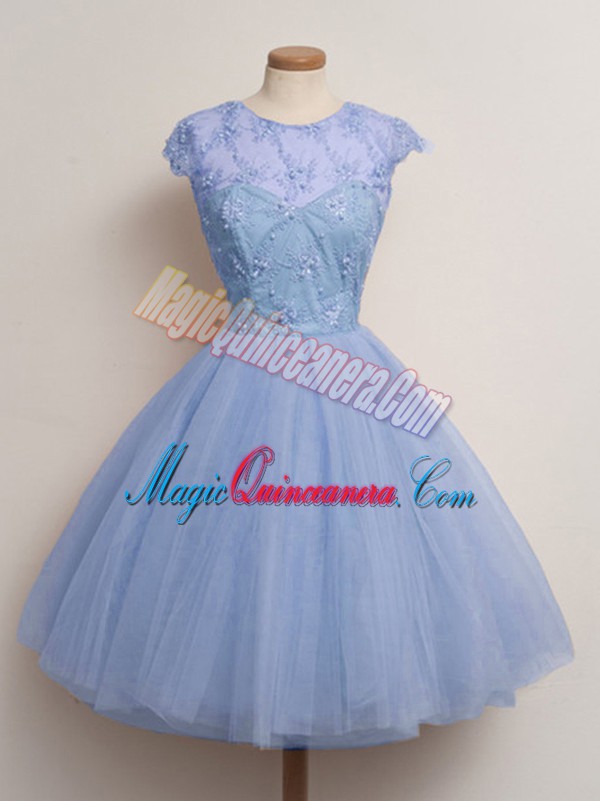 Lace Court Dresses for Sweet 16 Blue Lace Up Cap Sleeves Knee Length