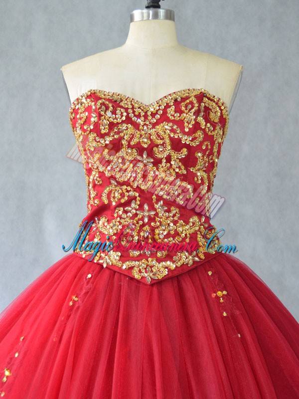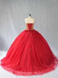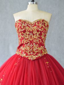 , Lace Up Quinceanera Gowns Red for Sweet 16 and Quinceanera with Beading Brush Train