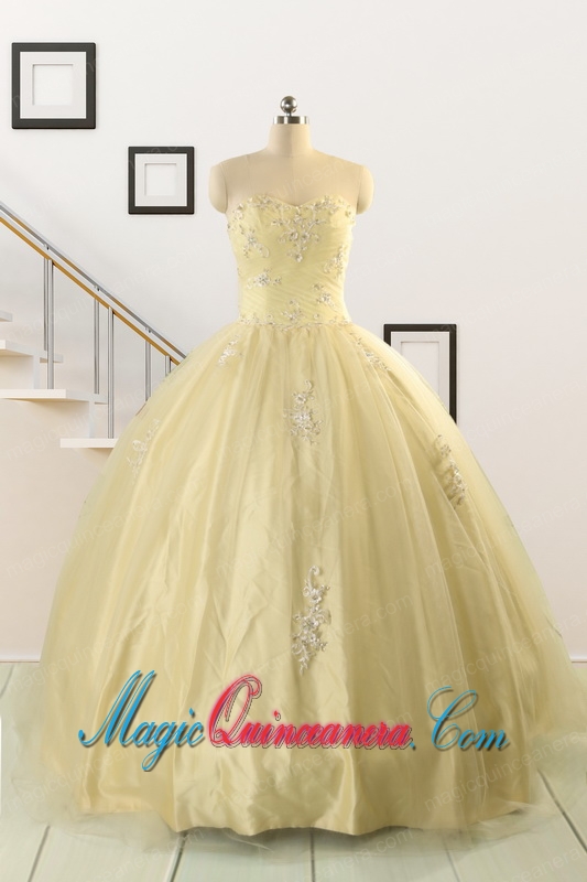 , Latest Appliques Quinceanera Dress in Light Yellow For 2015