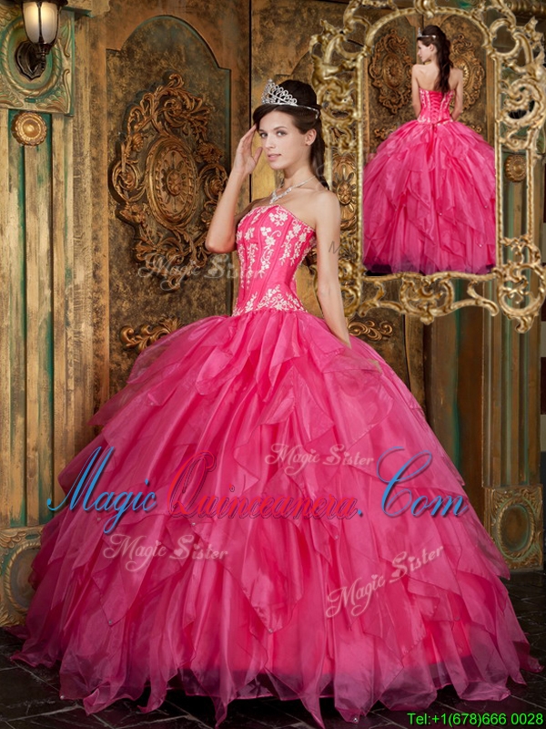 Latest Ball Gown Floor Length Hot Pink Quinceanera Dresses