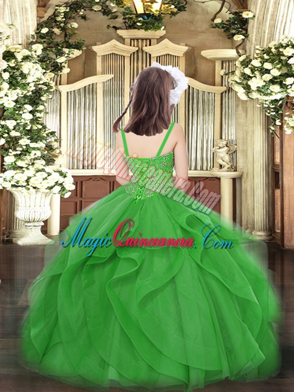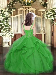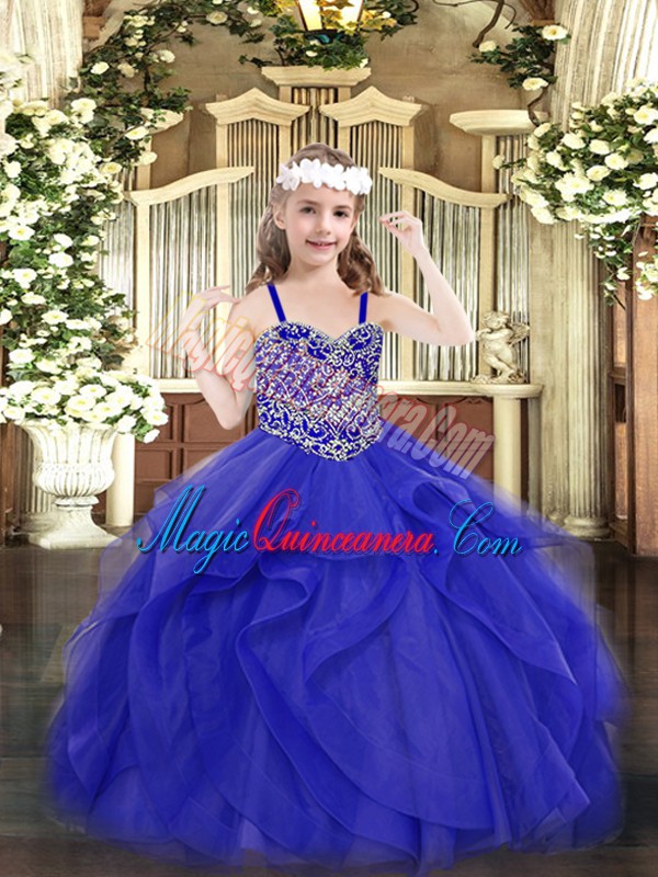 Latest Blue Winning Pageant Gowns Party and Quinceanera with Beading and Ruffles Straps Sleeveless Lace Up