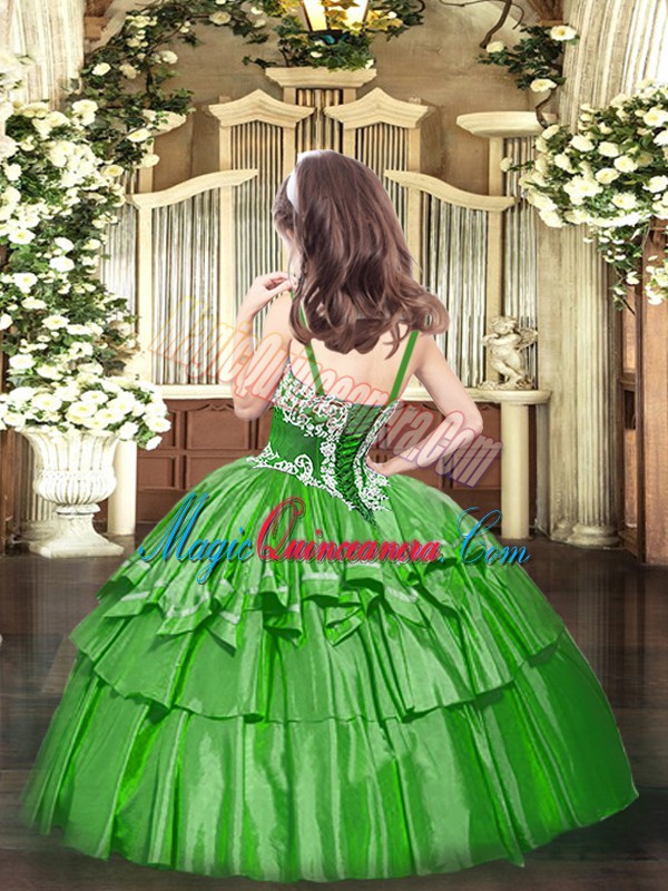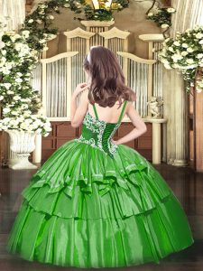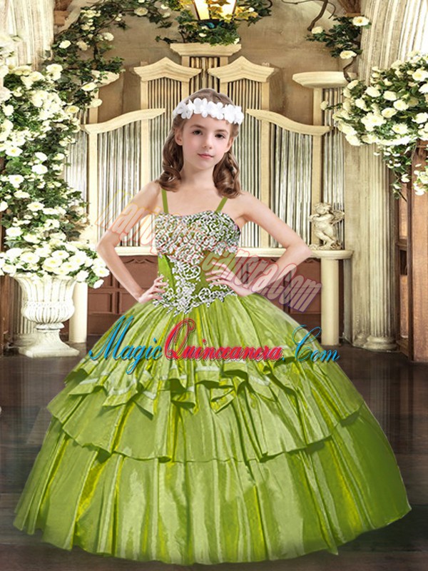 Latest Floor Length Olive Green Kids Pageant Dress Straps Sleeveless Lace Up
