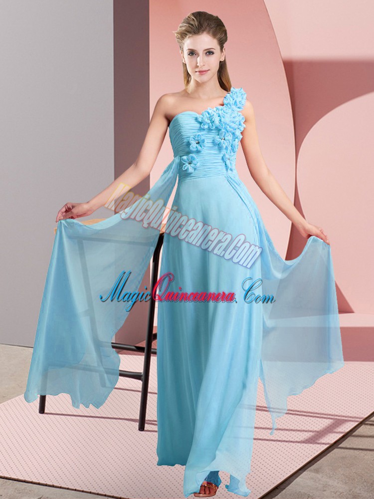 Latest One Shoulder Sleeveless Chiffon Dama Dress for Quinceanera Hand Made Flower Lace Up