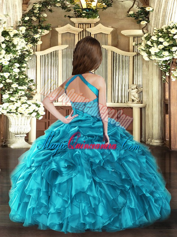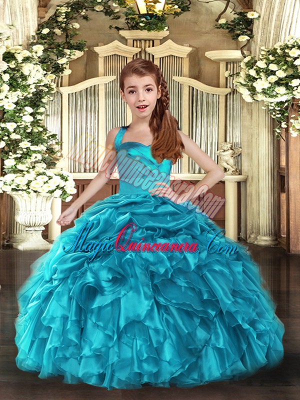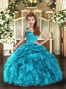 Latest Organza Sleeveless Floor Length Child Pageant Dress and Ruffles and Ruching