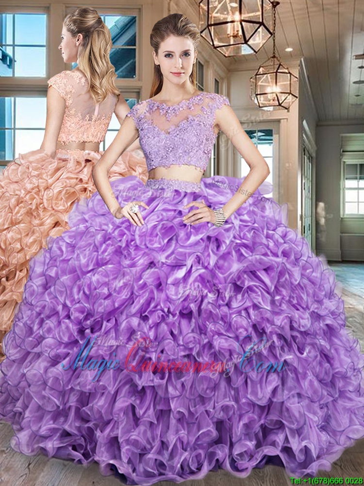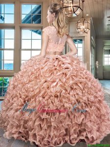 Latest Scoop Cap Sleeves Organza Sweet 16 Dresses Beading and Appliques and Ruffles Zipper