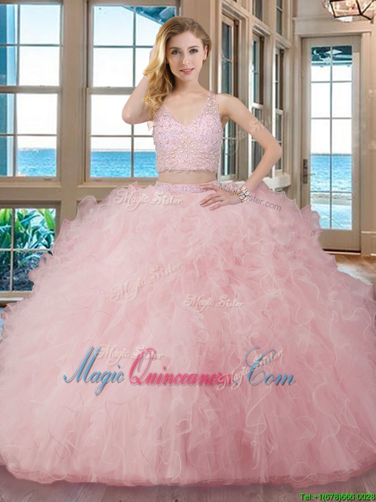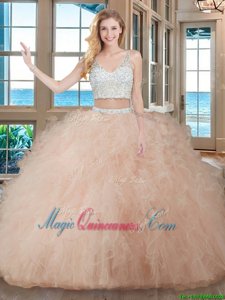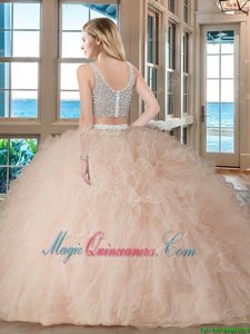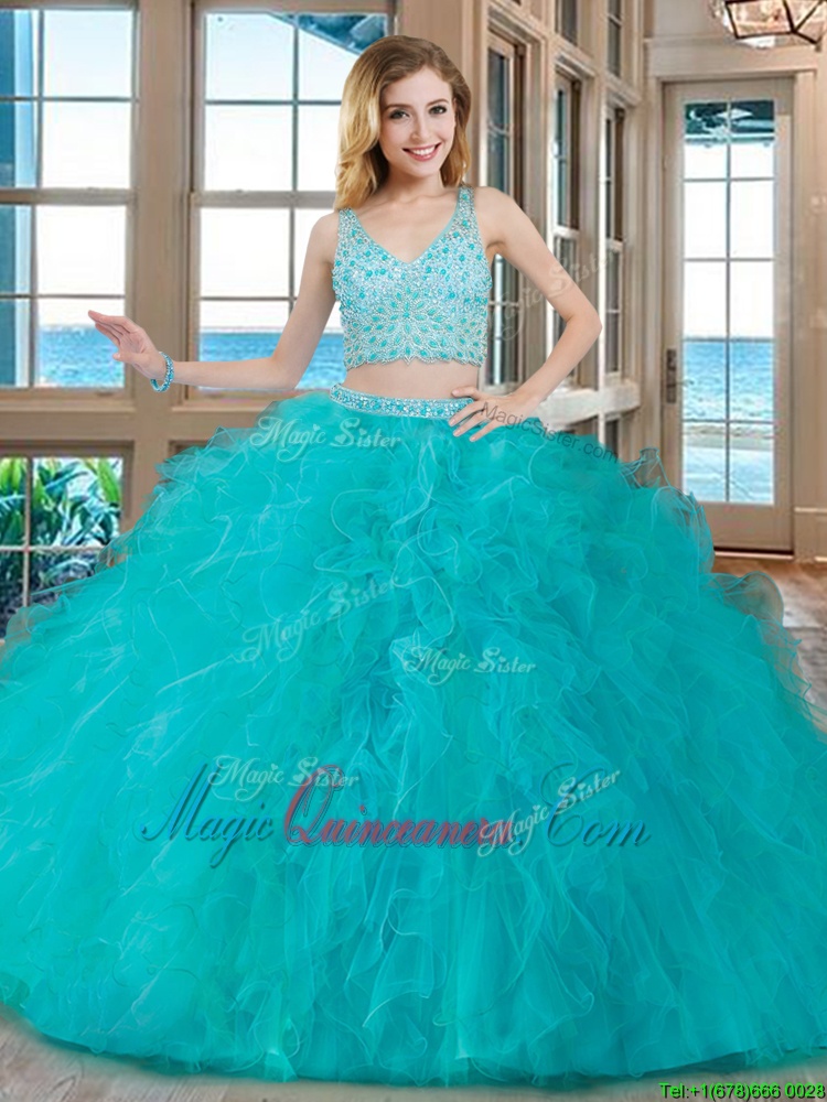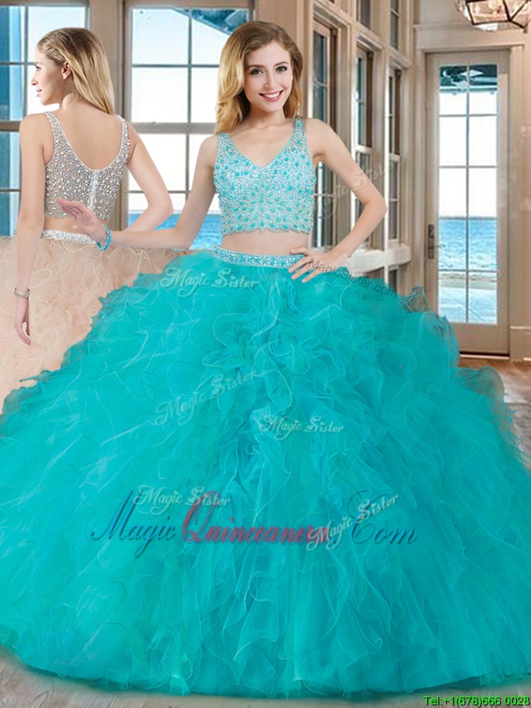 Latest Sleeveless Floor Length Beading and Ruffles Zipper Quinceanera Dresses with Teal