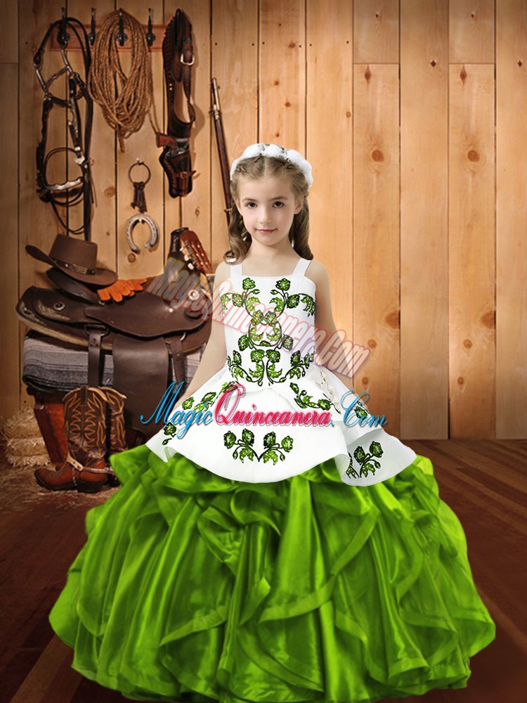 , Latest Straps Sleeveless Evening Gowns Floor Length Embroidery and Ruffles Organza