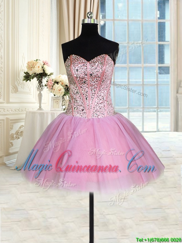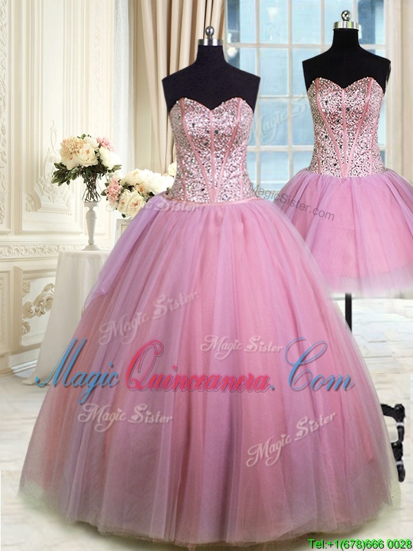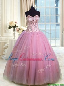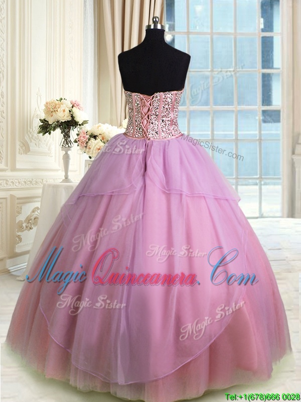 Latest Three Piece Lavender Sweetheart Lace Up Beading Quinceanera Gown Sleeveless