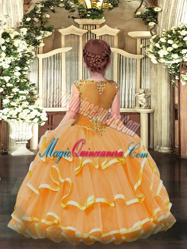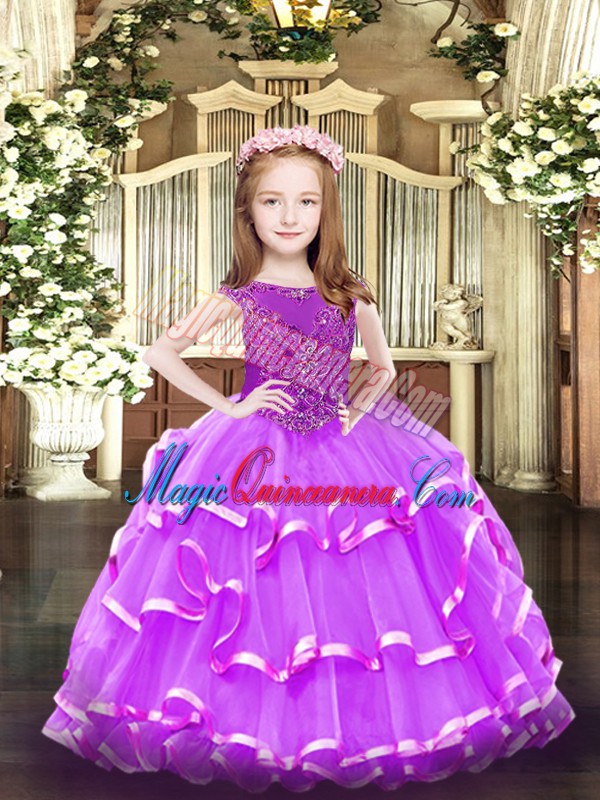 Lavender Ball Gowns Organza Scoop Sleeveless Beading and Ruffled Layers Floor Length Zipper Little Girls Pageant Dress