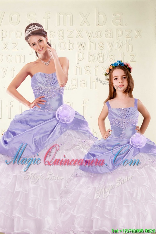 You're reviewing: Lavender Ball Gowns Sweetheart Sleeveless Organza and Taffeta Floor Length Lace Up Beading and Ruffled Layers and Hand Made Flower Sweet 16 Dress