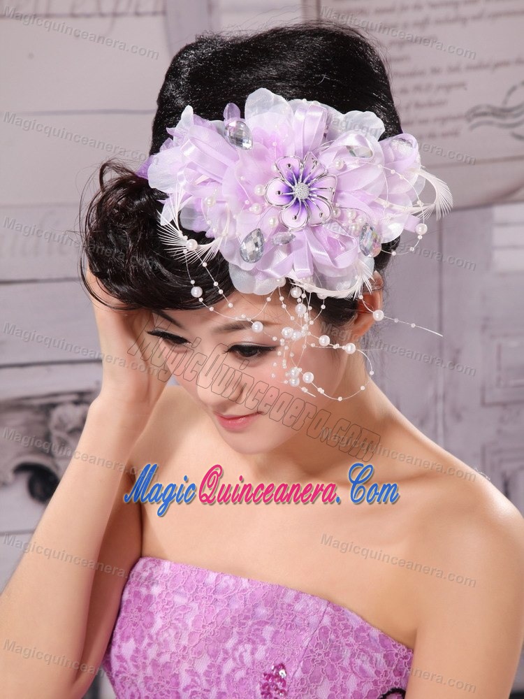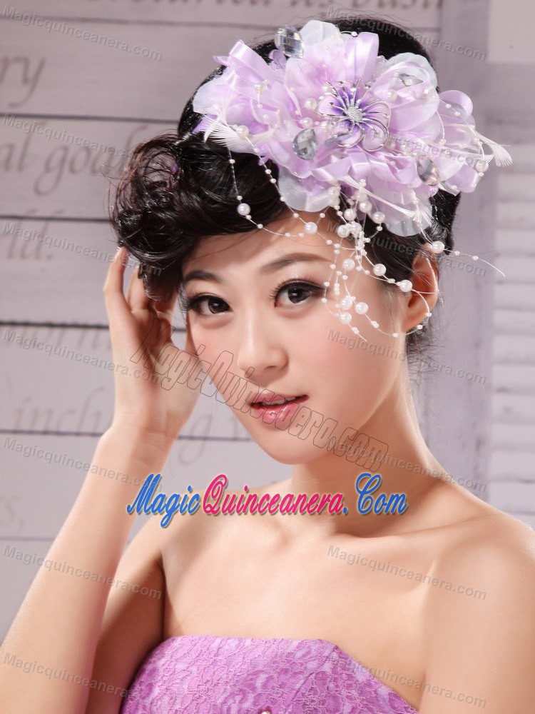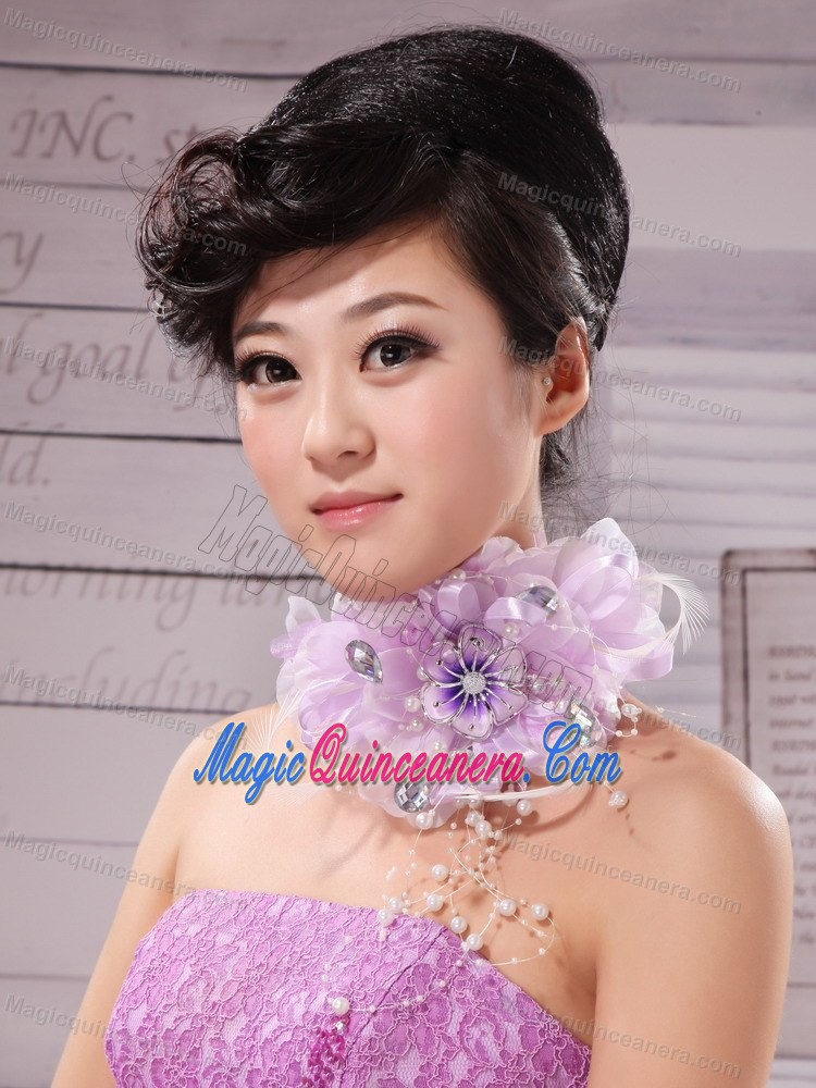 Lavender Beading and Hand Made Flowers For Headpiece