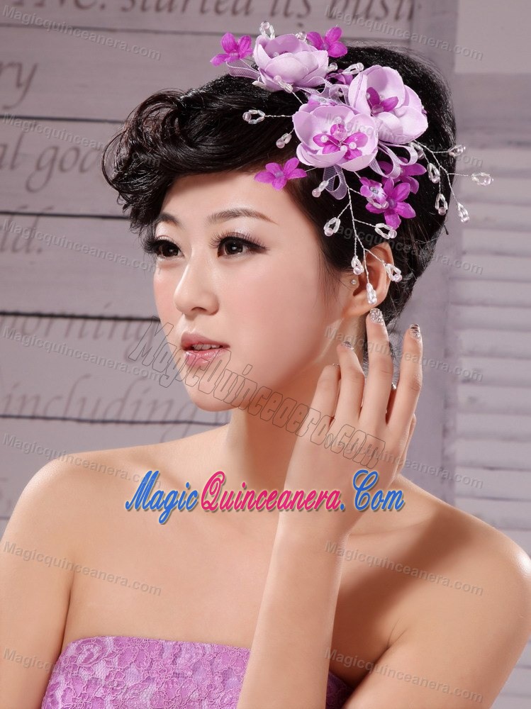 Lavender Beading and Hand Made Flowers Lovely Headpieces