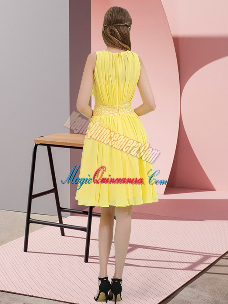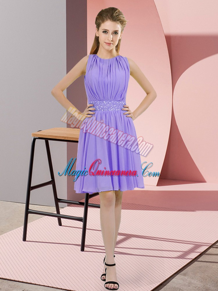 Lavender Empire Sequins Vestidos de Damas Zipper Chiffon Sleeveless Knee Length