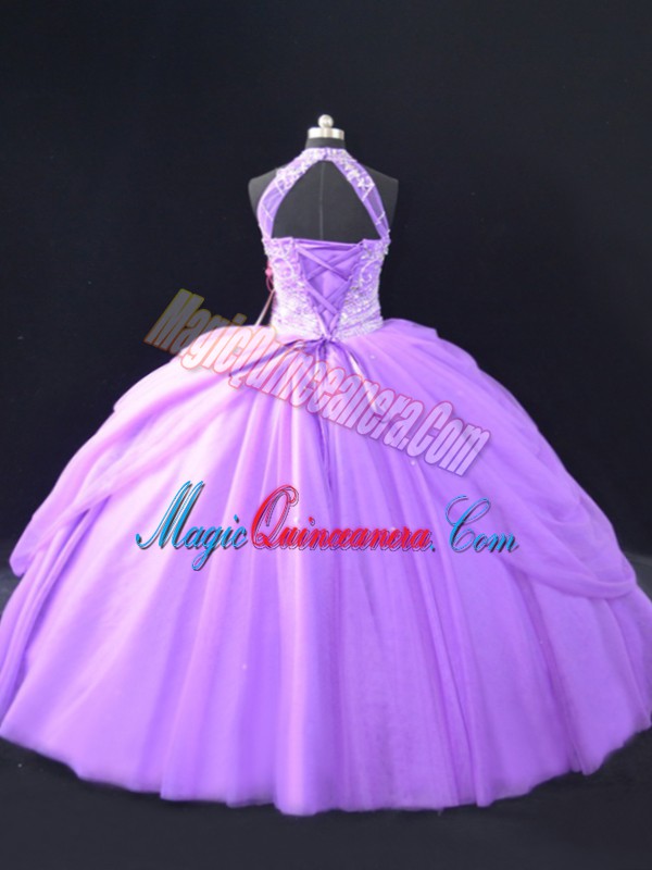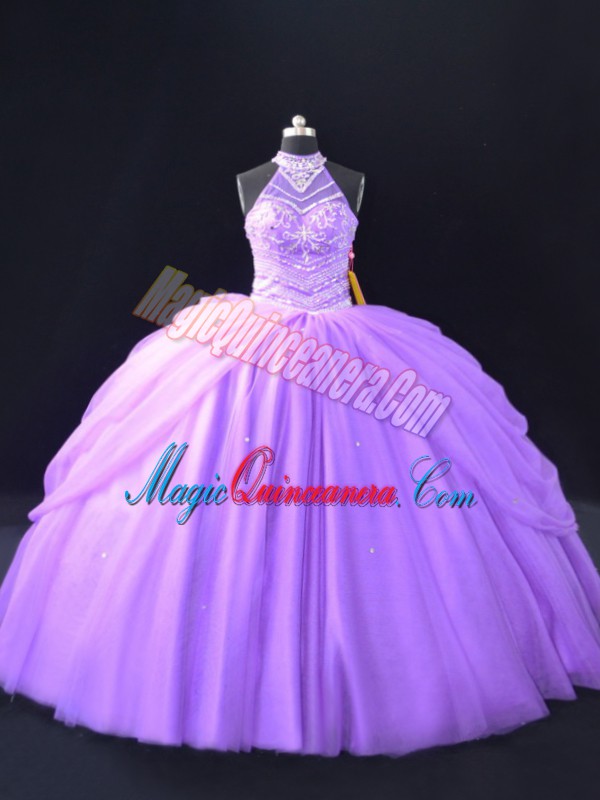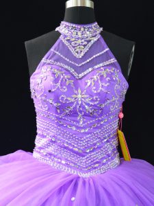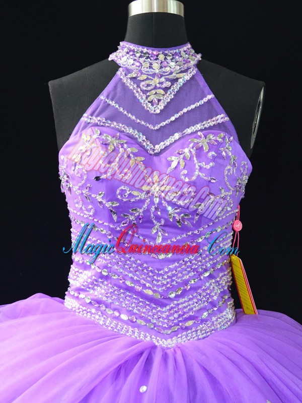 Lavender Halter Top Beading and Pick Ups Quinceanera Dresses Sleeveless