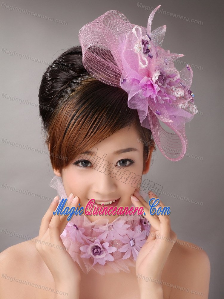 Lavender Headpices With Appliques Decorate On Tull For Prom