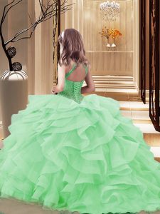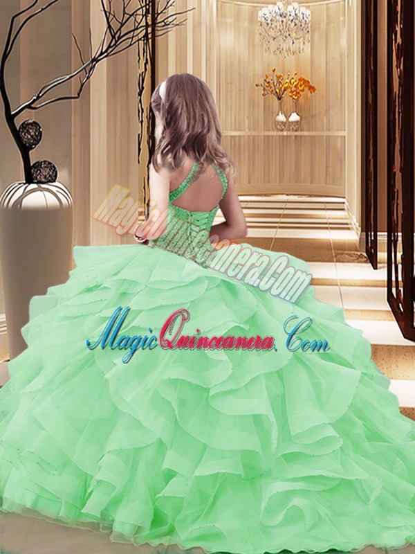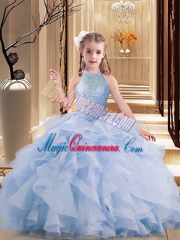 Lavender High-neck Lace Up Beading Pageant Dress for Teens Brush Train Sleeveless