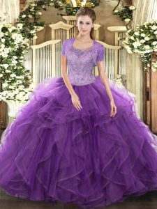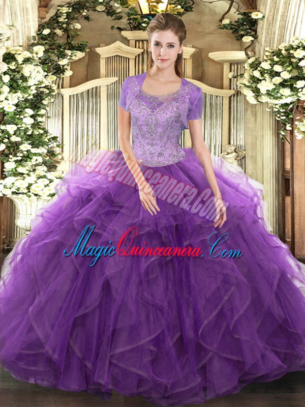 Lavender Scoop Neckline Beading and Ruffled Layers Ball Gown Prom Dress Sleeveless Clasp Handle