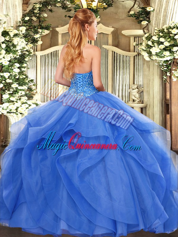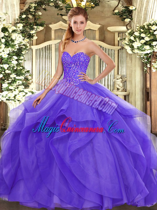 , Lavender Sleeveless Beading and Ruffles Floor Length Ball Gown Prom Dress