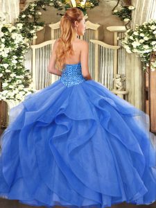 Lavender Sleeveless Beading and Ruffles Floor Length Ball Gown Prom Dress