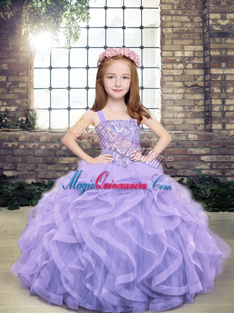 Lavender Sleeveless Beading and Ruffles Floor Length High School Pageant Dress