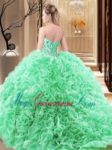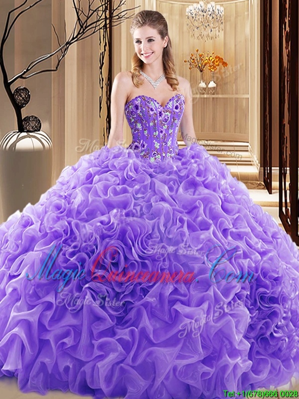 Lavender Sleeveless Court Train Embroidery and Ruffles and Pick Ups Sweet 16 Dress