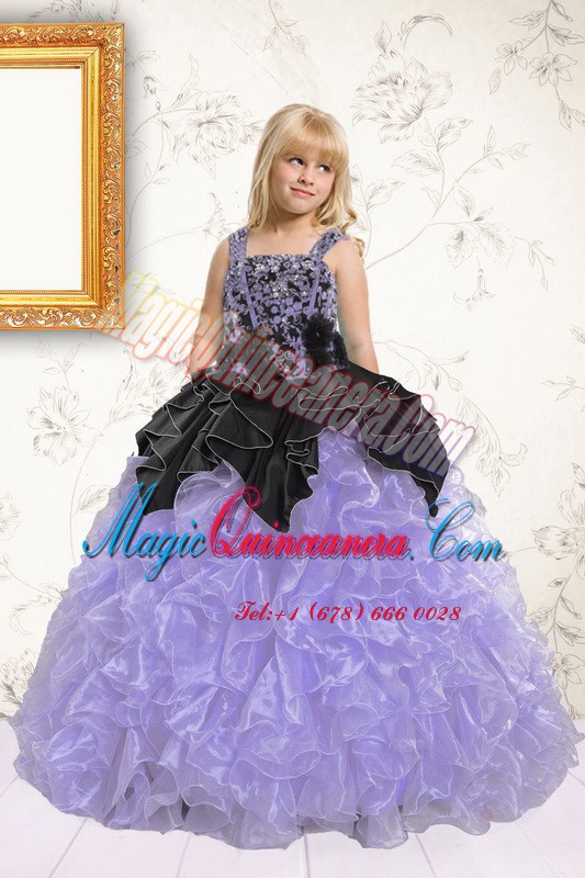, Lavender Sleeveless Floor Length Beading and Pick Ups Lace Up Glitz Pageant Dress