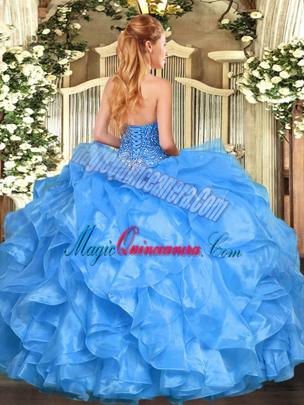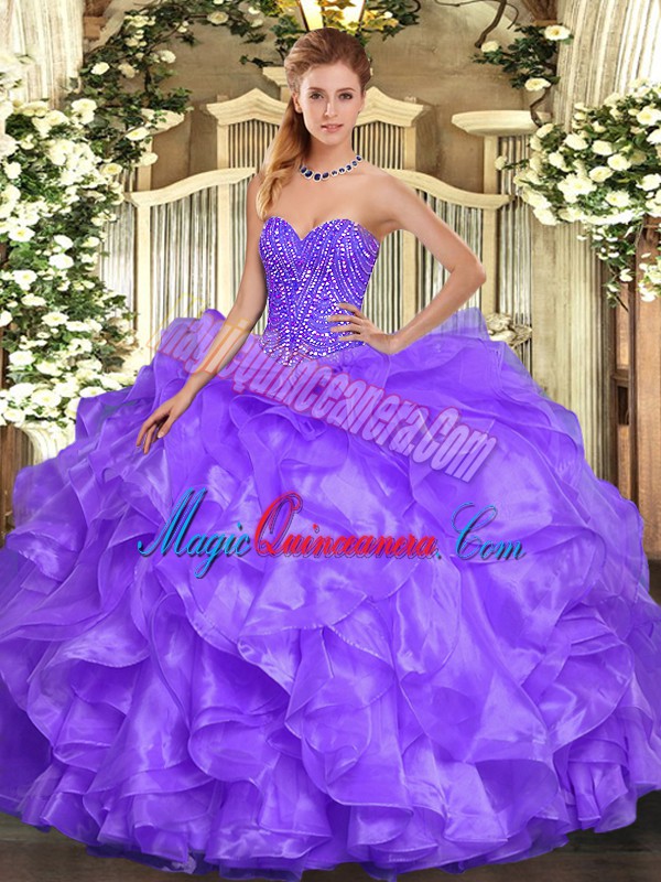 Lavender Sleeveless Floor Length Beading and Ruffles Lace Up 15th Birthday Dress