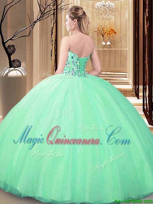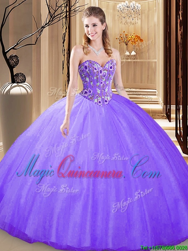 , Lavender Sleeveless Floor Length Embroidery Lace Up Sweet 16 Quinceanera Dress