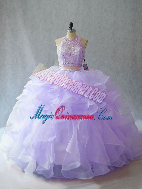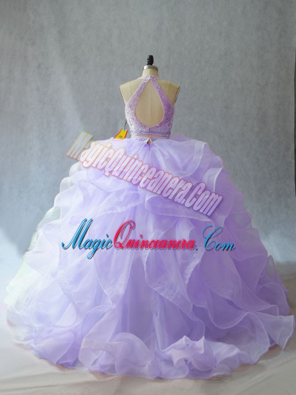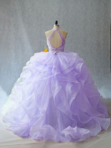 Lavender Sleeveless Organza Brush Train Backless Sweet 16 Dresses for Sweet 16 and Quinceanera