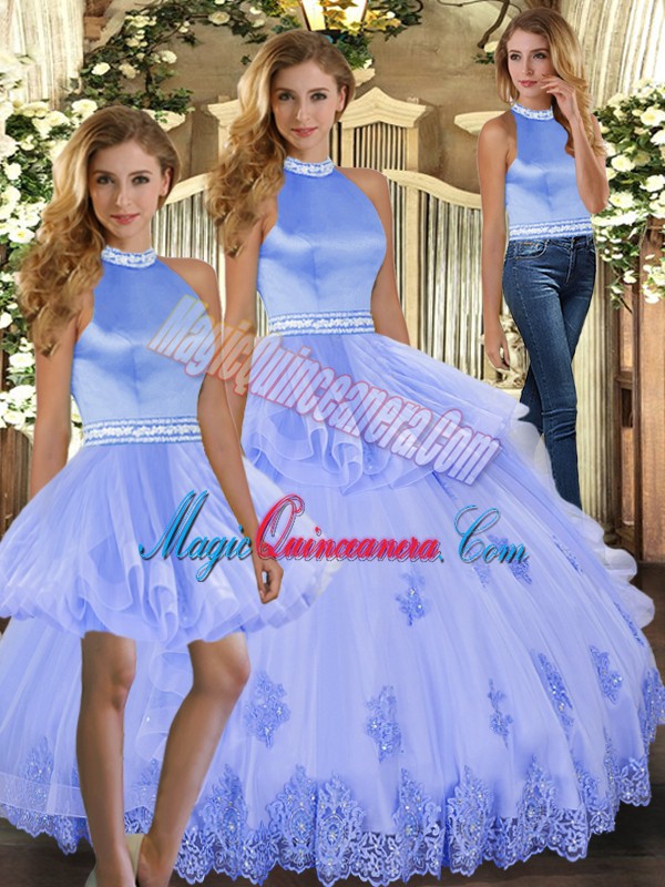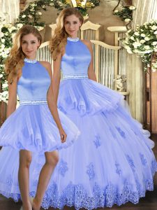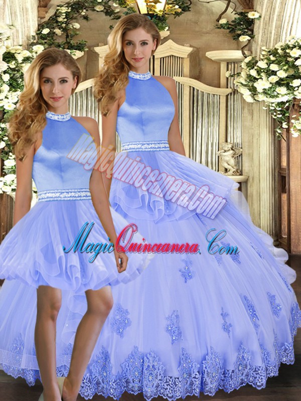 Lavender Sleeveless Tulle Backless Sweet 16 Dresses for Sweet 16 and Quinceanera