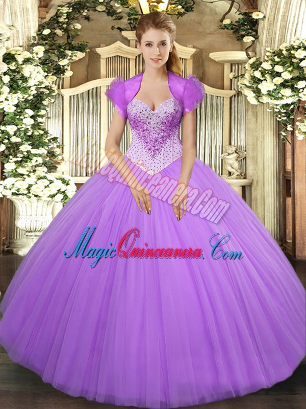 Lavender Sleeveless Tulle Lace Up Sweet 16 Dress for Military Ball and Sweet 16 and Quinceanera