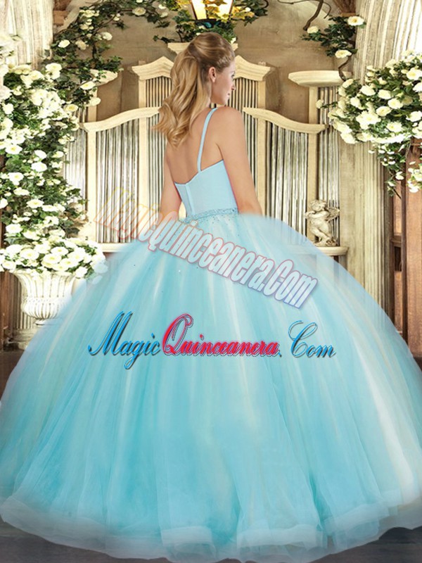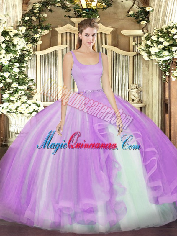 Lavender Sleeveless Tulle Zipper Quinceanera Dress for Military Ball and Sweet 16 and Quinceanera