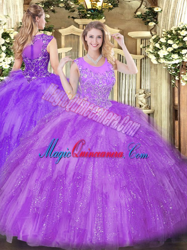Lavender Sleeveless Tulle Zipper Sweet 16 Quinceanera Dress for Military Ball and Sweet 16 and Quinceanera