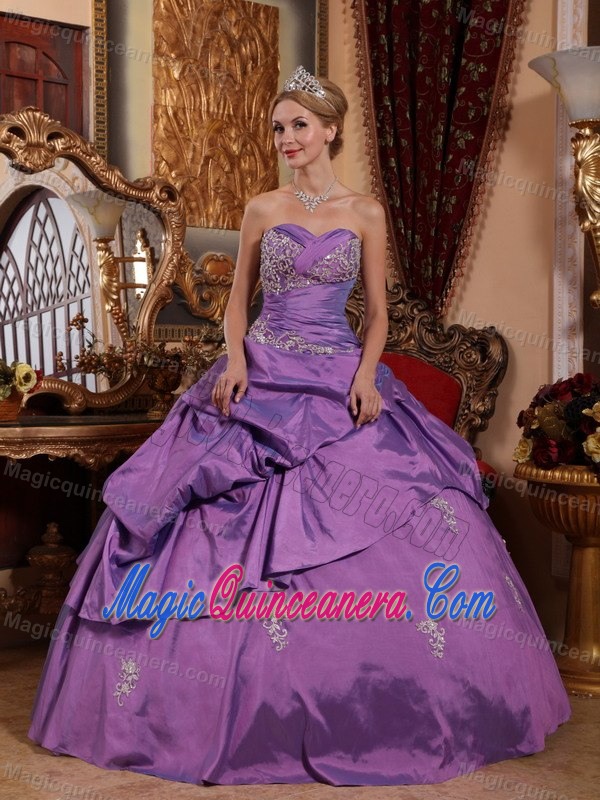 Lavender Strapless Taffeta Appliques Quinceaneras Dress in Newry