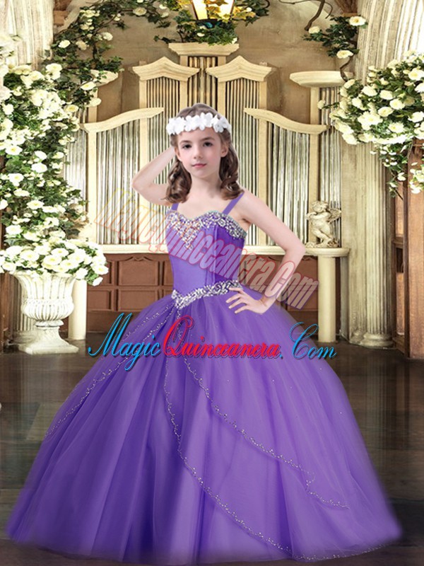 , Lavender Straps Lace Up Beading Pageant Dress Sweep Train Sleeveless