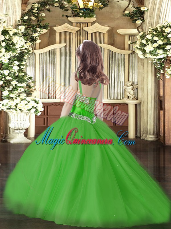Lavender Straps Lace Up Beading Pageant Dress Sweep Train Sleeveless