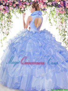 Graceful Lilac Backless High-neck Beading and Ruffled Layers 15th Birthday Dress Organza Sleeveless