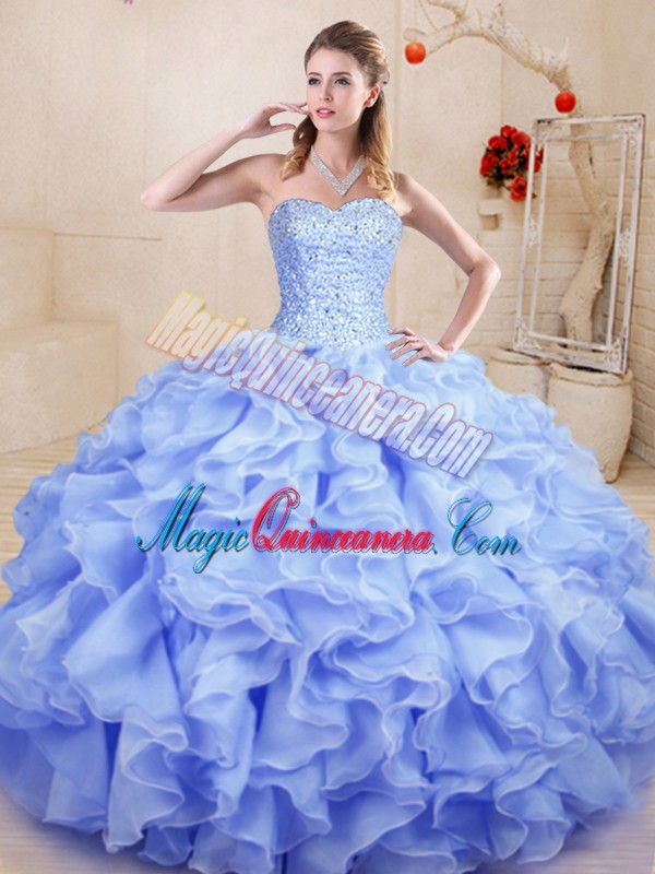 Lavender Sweetheart Neckline Beading and Ruffles Quinceanera Dresses Sleeveless Lace Up