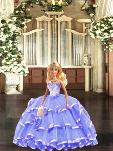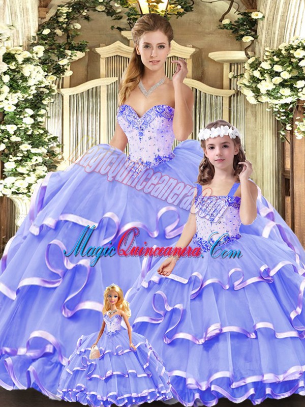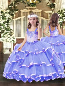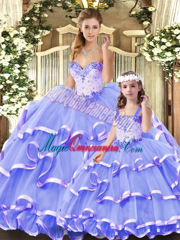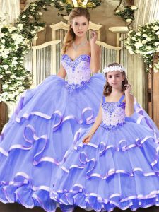 Lavender Tulle Lace Up 15 Quinceanera Dress Sleeveless Floor Length Beading and Ruffled Layers