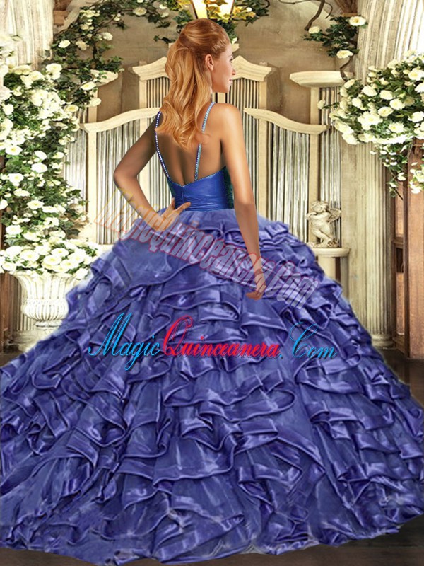 Lavender V-neck Neckline Beading and Ruffles 15 Quinceanera Dress Sleeveless Backless