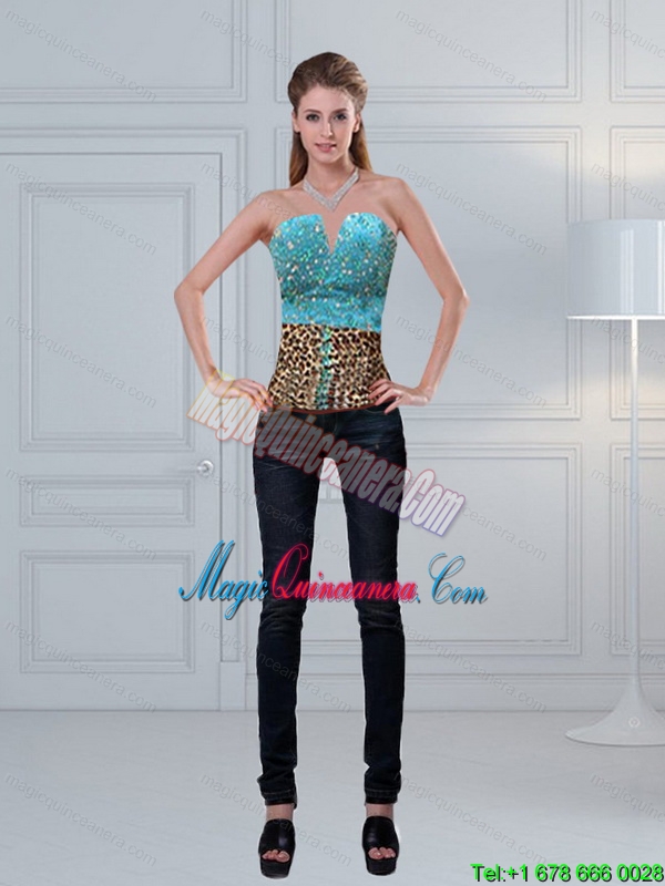 , Leopard Printed Baby Blue Beaded Perfect Corset for 2015