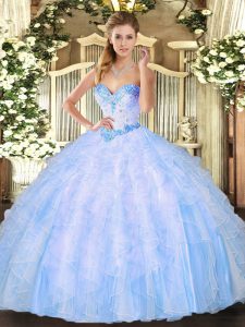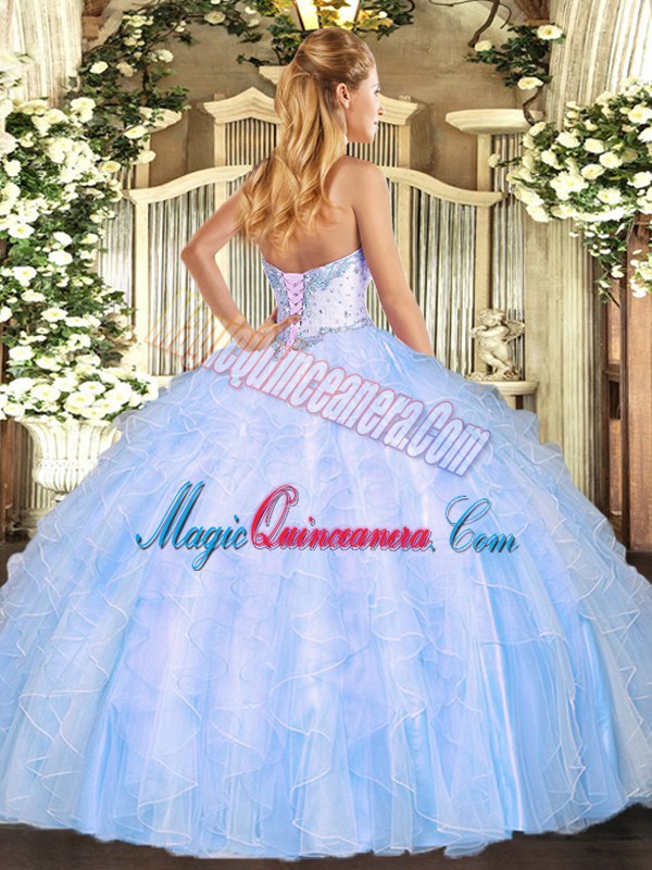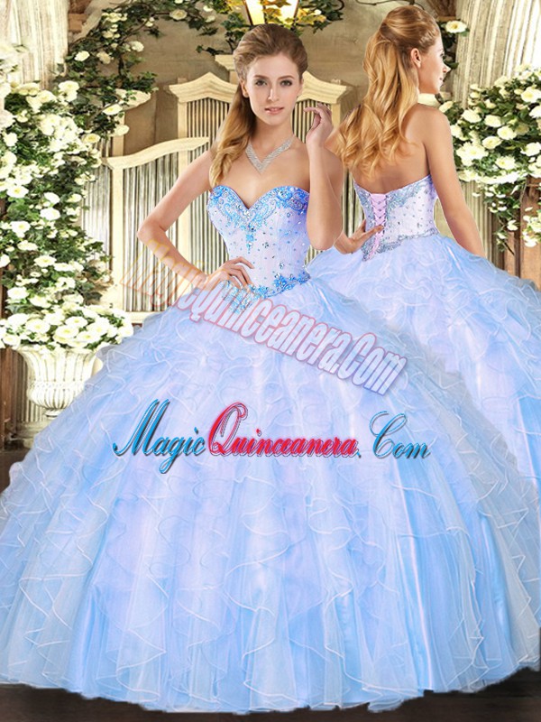 Light Blue Sweetheart Lace Up Beading and Ruffles Vestidos de Quinceanera Sleeveless