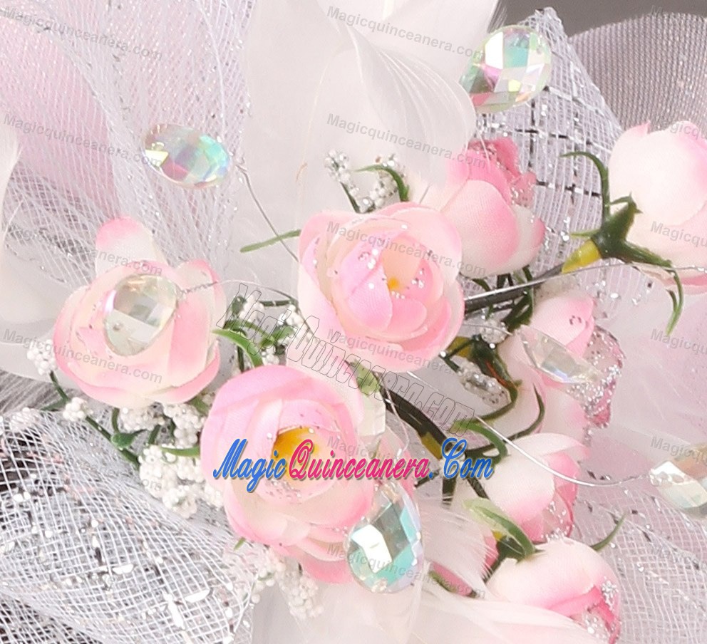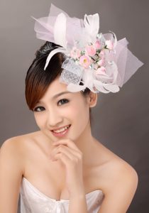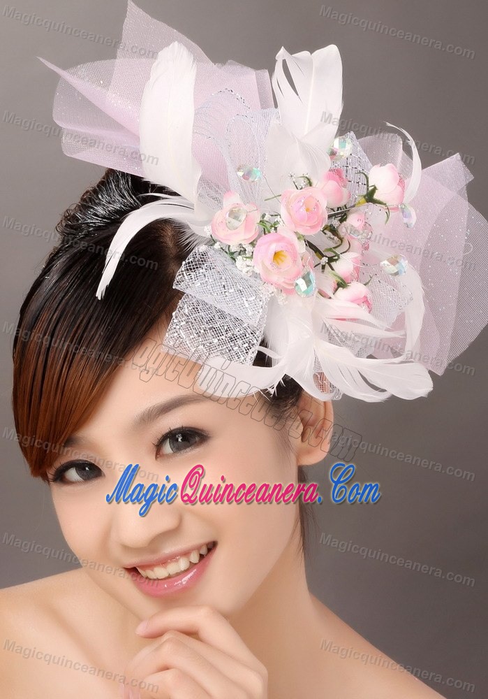 Light Pink Fashionable Tulle Feather Hand Made Flowers Beading Fascinators