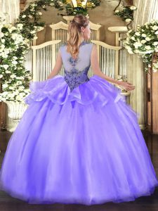 Light Yellow Ball Gowns Beading Vestidos de Quinceanera Lace Up Organza Sleeveless Floor Length