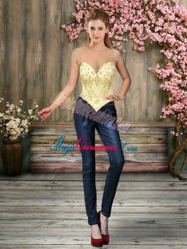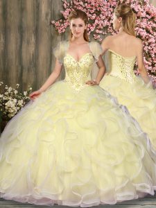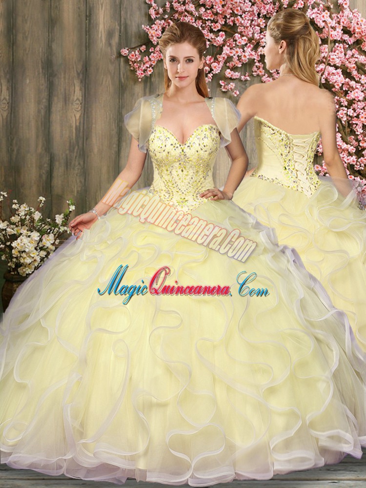 Light Yellow Sleeveless Tulle Lace Up Sweet 16 Dress for Military Ball and Sweet 16 and Quinceanera