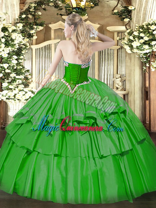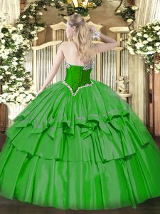 Lilac Ball Gown Prom Dress Military Ball and Quinceanera with Beading and Ruffled Layers Sweetheart Sleeveless Lace Up
